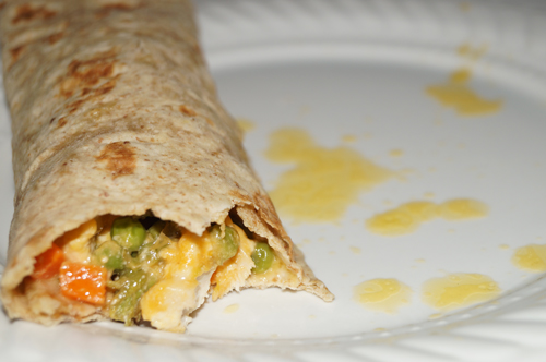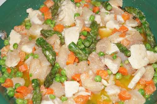 ASPARAGUS CARROTS CHICKEN PEAS WHOLE WHEAT ROLL UPS